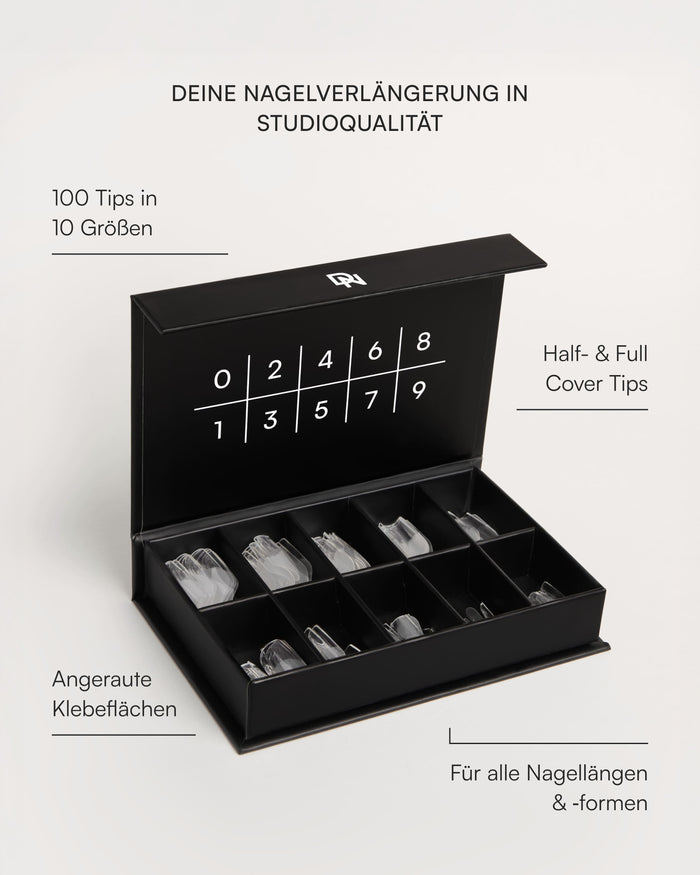 Flexible Half- und Full-Cover Tips zur Nagelverlängerung.