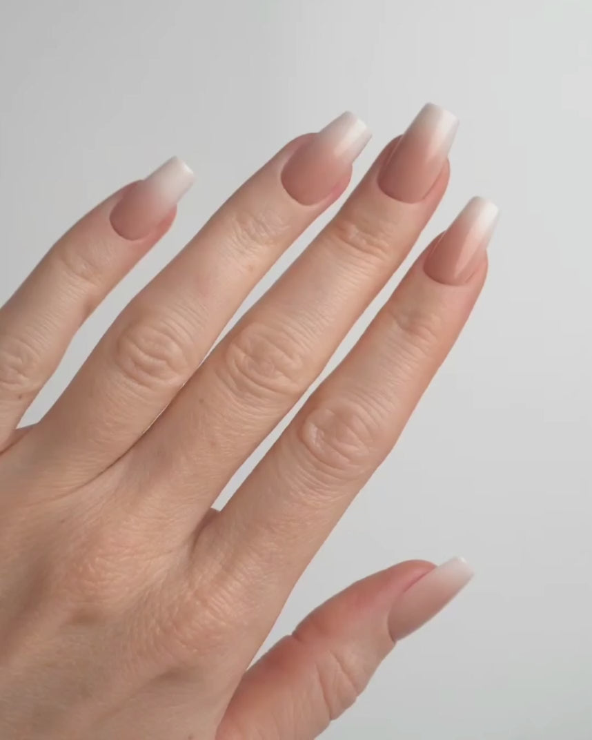 Soft, dreamy, zeitlos — der Babyboomer-Look ist ein Klassiker, der nie aus der Mode kommt. Mit dem nahtlosen Ombré-Verlauf und der stylischen Short Coffin Form wird dein Alltag zum Luxusmoment. Diese Soft Gel Press Ons sitzen bequem, sehen täuschend echt aus und passen zu allem. Einfach aufdrücken — und die Nägel machen den Rest.
