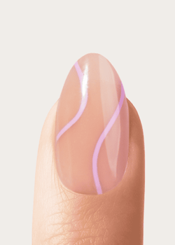 Klebesticker auf den Nagel kleben, Schutzfilm abziehen und die Press Ons im 45°-Winkel aufsetzen. 60 Sekunden fest andrücken – fertig! 💅